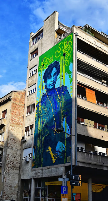 A huge mural of Serbia's QUEEN NATALIE, wife of Milan I Obrenovic of Serbia, who ruled from 1882 to 1889. Queen Natalie was a celebrated beauty in her youth and was later regarded as one of those most beautiful queens in Europe.