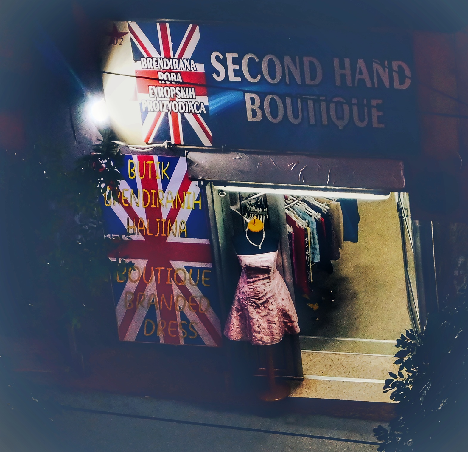 In the meantime, this dress in front of a thrift shop across the street caught my eye. A retro one; my mother wore a similar one for special occasions.